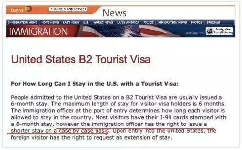 美國移民局官網規定:移民官有權決定入境的停留時間